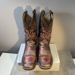 Shyanne Girls’ brown with pink sparkly Wester Boots with square toe and 1” heel. Crafted for style and comfort. Preowned good condition.