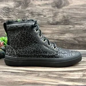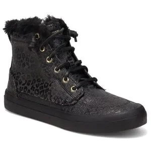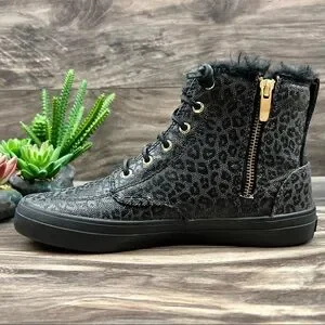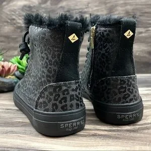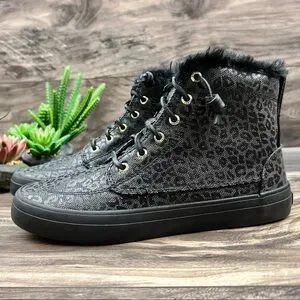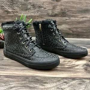 NIB Sperry Crest Vibe Canvas High Top Sneaker Black Animal Print Textile