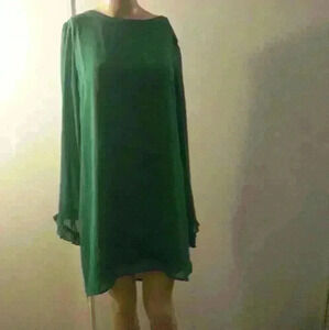 Forever 21 mini day 2 nite poly blend trendy green bell long sleeve dress L