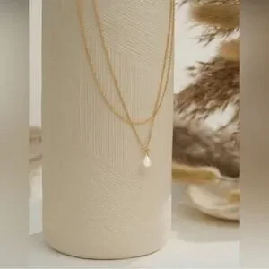 This elegant gold layered necklace features a delicate pearl pendant, perfect for adding a touch of sophistication to any outfit. Ideal for both casual and formal occasions.
