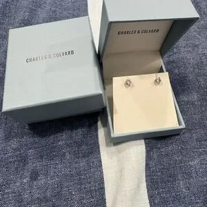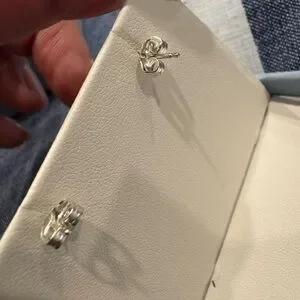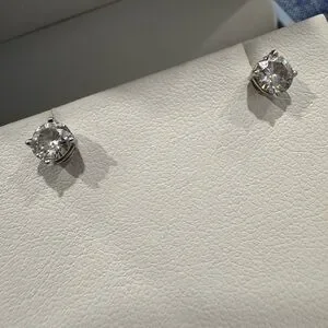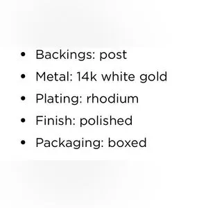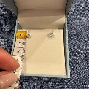 Elegant white gold stud earrings. Comes in original box. Perfect for any occasion.not sure of sizing I just posted a photo.. I need to do more research. I did purchase these for myself I just don’t remember the sizing