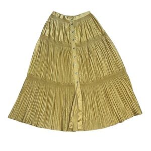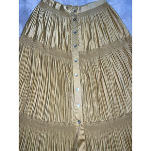 Women's Soft Surroundings Gold Tiered Button-Front Maxi Skirt M
