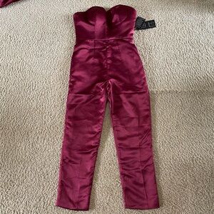 NWT Lover in Paris Satin Jumpsuit Detachable Waist Cape Pants Dress burgundy