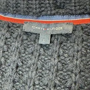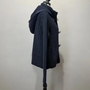 Tommy Hilfiger Waffle Chunky Knit Wool Bld Cardigan Womens L Sweater Collar Hood