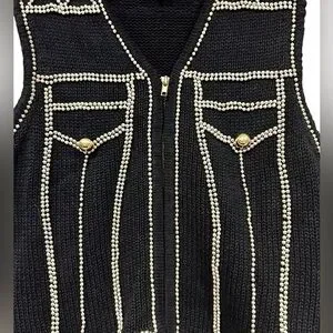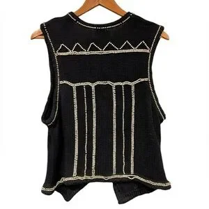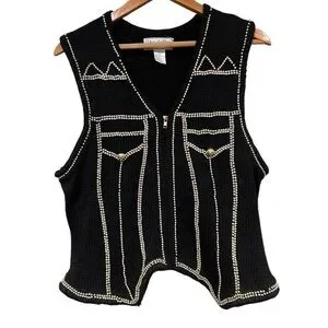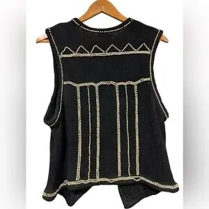 Vintage Lisa Ashley Beaded Vest black & gold Large Cottagecore Grandmacore Women