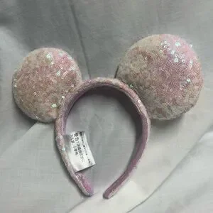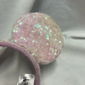 Disney Parks Sequin Headband Shimmery Mouse Ears White Light Pink Sequins