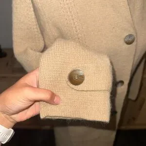 Amazing condition. No stains or holes. Tan 100% Alpaca button down long line sweater, size small.