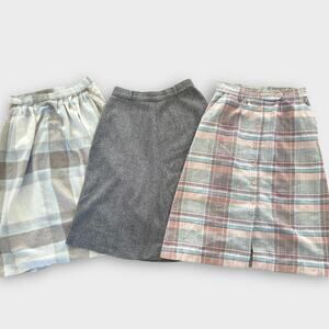 Vintage Skirt Lot – 3 Styles (Plaid + Wool Blend) – Small/Medium