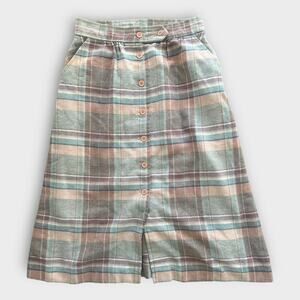 2. Pink & Sage Plaid Button-Front Skirt