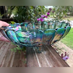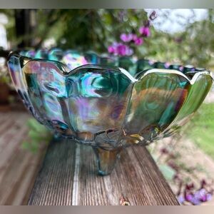 CARNIVAL GLASS Indiana Iridescent Blue Bowl