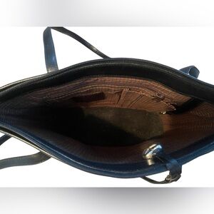 Brighton Vintage large black structured leather shoulder bag reptile print trim