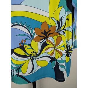Susan Graver size XL tunic length liquid knit shirt. 3/4 length tie sleeve, boat neck. Bold geometric and floral print.