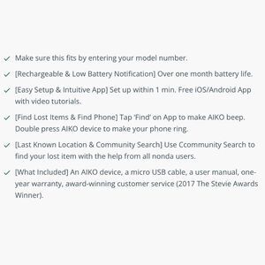 * Find Lost Items & Find Phone - Tap 'Find' on App to make AIKO beep Double press AIKO device to make your phone ring