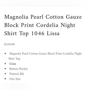 Magnolia Pearl Cordelia Night Shirt Cotton Gauze Block Print Top