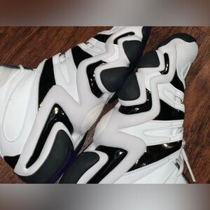 ⚫️The colorway of the sneakers is so nice and eye catching and will definitely have a lot of people looking your way because they are that nice, even from the style of the shoes, these really stand out ❗️ The sleek black patent leather and white is amazing ❗️❗️