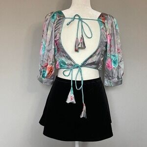 📌 #Vintage #Floral #Silk #CropTop #StatementPiece