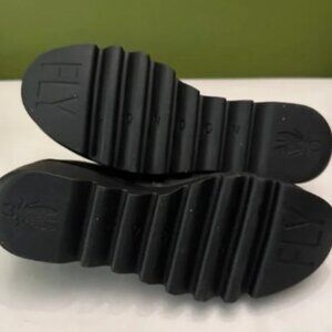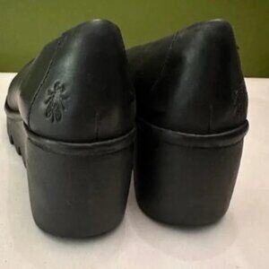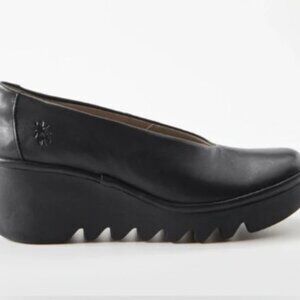 Fly London Beso Wedge Pump Black EU 40 US Size 9 New without box, tried on but never worn Edgy detailing on the wedge sole gives a fresh look to this pump that has a leather insole cushioned with memory foam and an elastic heel inset for comfort. 2 1/2" heel, 1" platform Leather upper and lining/rubber sole Imported Women’s size 40 - size 9.