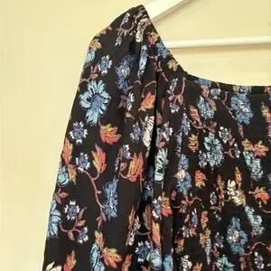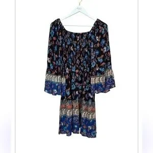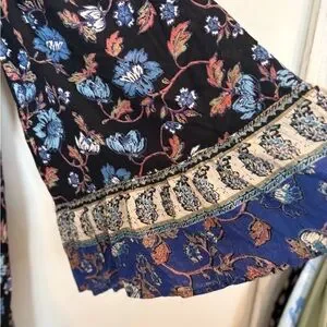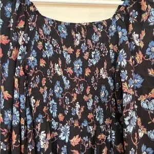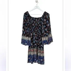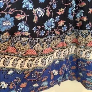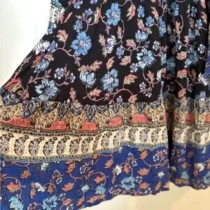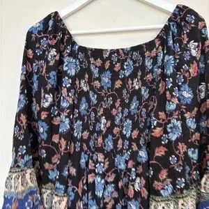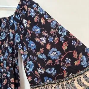Angie Floral Flare Sleeve Blue Ruffle Smocked Boho Cottagecore Dress Size M