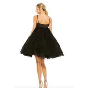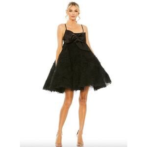 MAC DUGGAL Dress Evening Gown Black Mini Tulle Satin Bow Fit Flare Sz 6 Cupcake