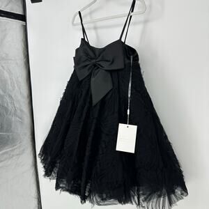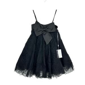 Elevate your style with this tulle mini Dress, featuring a square neckline, empire waistline, and a bold statement bow for a sophisticated, feminine look.