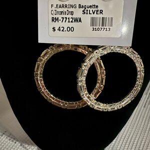 Elegant Silver cubic zirconia, baguette Hoop Earrings