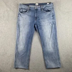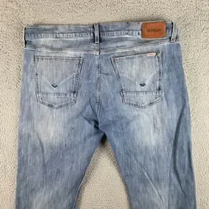 HUDSON Jeans Mens 40 (38x27) Blue Byron 5 Pocket Straight Zip Fly Distressed