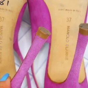 - Authentic MANOLO BLAHNIK "Allura" or BB? high heel pointed toe SLINGBACK pumps in bright PINK suede.