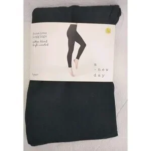 1 Pair Seamless Leggings Cotton Blend High Waist Sm/Med Black