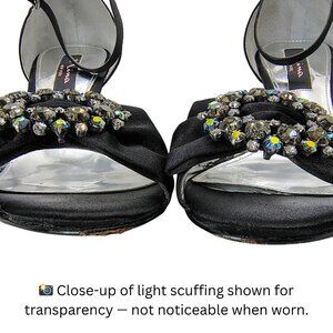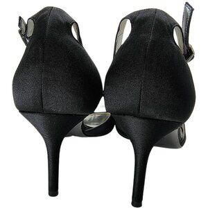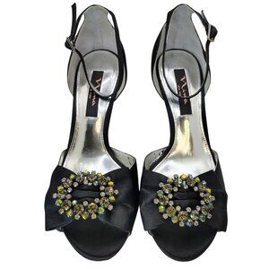 Nina New York Black Satin Rhinestone Ankle Strap Heels Size 8M