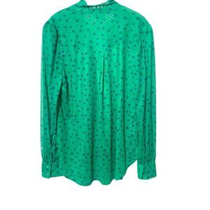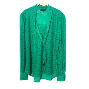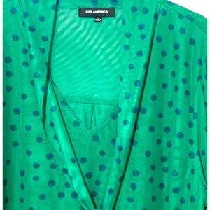 525 America Kelly Green Polka Dot Micro Mesh Blouse Top w tie Neck sz L