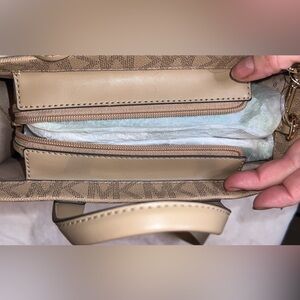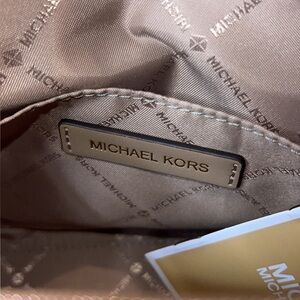 Stylish Michael Kors crossbody bag. Features signature MK pattern. Includes adjustable strap and gold-tone logo charm.