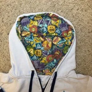 The Disney Parks Size Large Blue Compass Full Zip Hoodie is a stylish and comfortable activewear option for women. It features a colorblock pattern with an embroidered Disney logo, making it a fun and trendy choice for fans of the brand. The hoodie has long sleeves and a zip closure, perfect for staying warm during outdoor activities in all seasons. With a hooded design, pockets, and a regular fit, this hoodie offers both style and functionality for various activities like gym training, walking, or hiking.