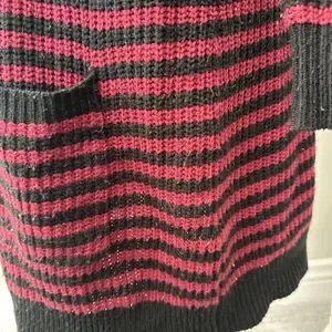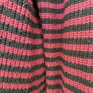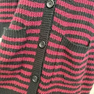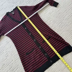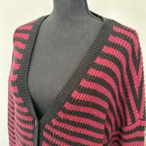 Hot Topic Long Cardigan Sweater, Red, Black, Striped Emo Size Medium Button Down