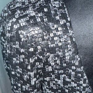 Beautiful black-and-white sequin blazer with satin lapels one button snap front closure . Fully lined in perfect condition. This is retro item approximately from around 2013.