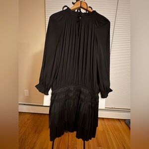 ANTHROPOLOGIE CURRENT AIR Satin Black Coquette Stylish Chic Pleated Mini Dress