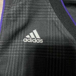Stylish Adidas jersey featuring Lakers design. Bold black with purple accents. Ideal for fans.
