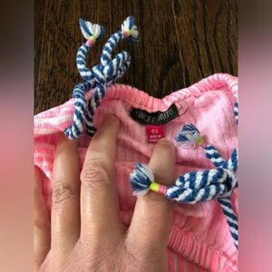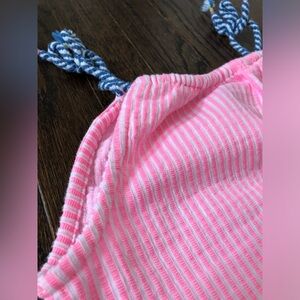 Color: Pink/White striped. Blue/white roped shoulder straps.