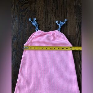 Vince Camuto Girls 6X Woven Cotton Pink/White Striped Halter Ruffled Hem Dress