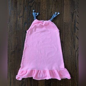 Details: Halter dress with blue rope shoulder straps (adjustable for fit). Ruffled neckline and hem. Perfect for summer days!!