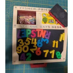 Transport yourself back to the days when bell-bottoms were cool and disco ruled the world. This vintage Fisher-Price School Days Desk is your ticket to reliving those groovy times. Complete with magnetic letters and numbers, it's like having a funky retro classroom on your tabletop.