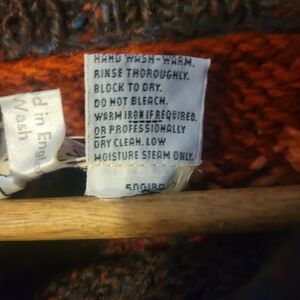Vintage. Vibrant hand knit 100% wool sweater with geometric patterns. Features a cozy cowl neck. Perfect for adding color to your wardrobe. Chunky heavy weight sweater perfect for winter. Made in England.