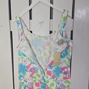 NWT, Sigrid Olsen Sport, White Blue Multi Bright Floral Pattern, Knee Length Stretch, Zipper Closure, Size 10