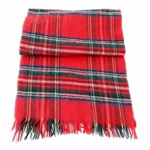 Vintage Red Tartan Plaid Lambs Wool Scarf