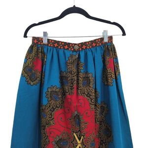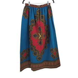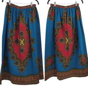 Vtg 70's Womens Skirt Handmade Full Maxi Medallion Psychedelic Fanfare Teal Sz X