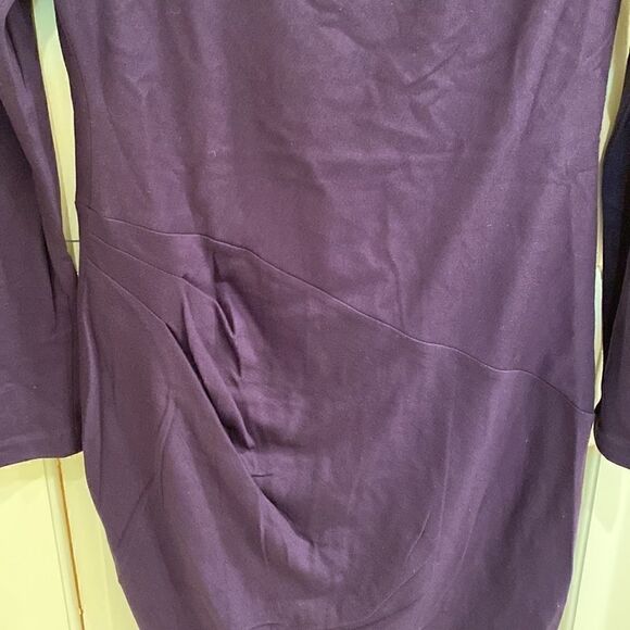 Tibi body con ruched purple/eggplant color dress. Flattering pleats and soft material. Size Womens large. 16” shoulder to shoulder. 14.5” waist. 38” shoulder to hem. Tiniest deodorant mark (seen in pics) but would be easily removed.