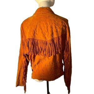 Awesome Soft Faux Suede burnt orange Fringe jacket