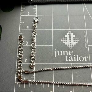 The Brighton necklace is a silver, large, multi-squared pendant necklace with a hammered texture. The pendant features a design of interconnected squares creating a geometric pattern. The chain is a box chain, 16 inches long with a lobster claw closure and a 2-inch extender, making it adjustable to 18 inches. Additional 3” extender included. In good condition with minimal age/wear. Please see all photos for more details and measurements!