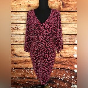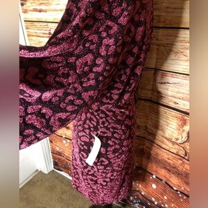 Step into the spotlight in this glittering leopard-print dress. Metallic fabric makes this bodycon mini the ultimate plus one. But that's not all: dolman sleeves move with you (hello dance floor partner), and then there's the fitted skirt that will be giving your figure compliments all night long.