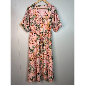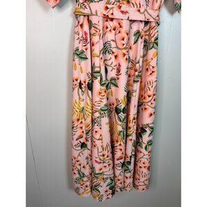 LOFT Midi Shirt Dress 10 Peach Pink Tropical Floral Button-Through Belted