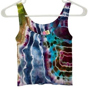 Handmade Geode Tie Dye Ribbed Tank Top Crop Womens Size Small Colorful Upcycled